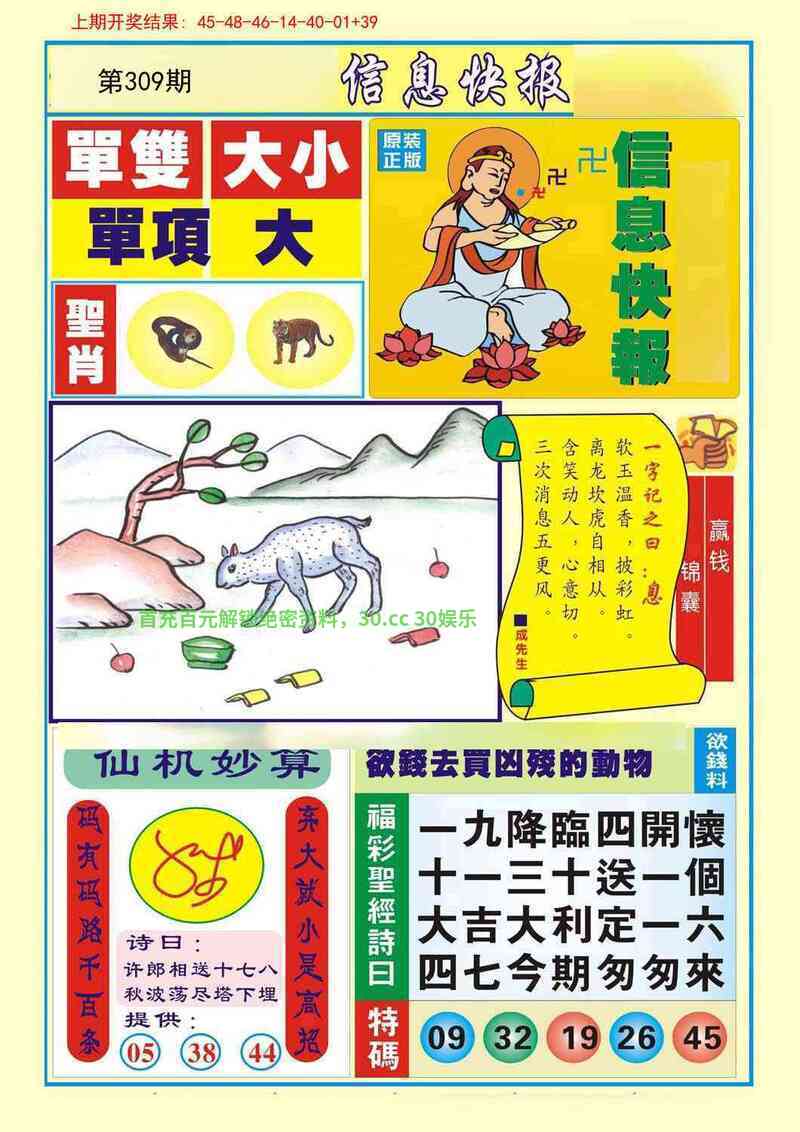 | 308期九肖〖羊马虎蛇牛狗鸡龙猪〗开:兔39错 |